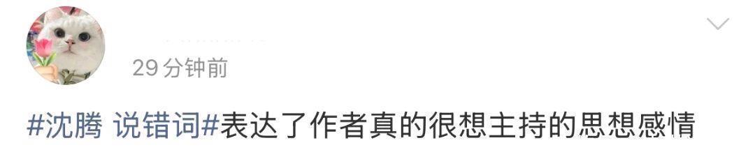 在与撒贝宁搭档互动时,沈腾疑似因紧张出现口误,脱口而出:“我不光是来主持的,我还想来主持”。