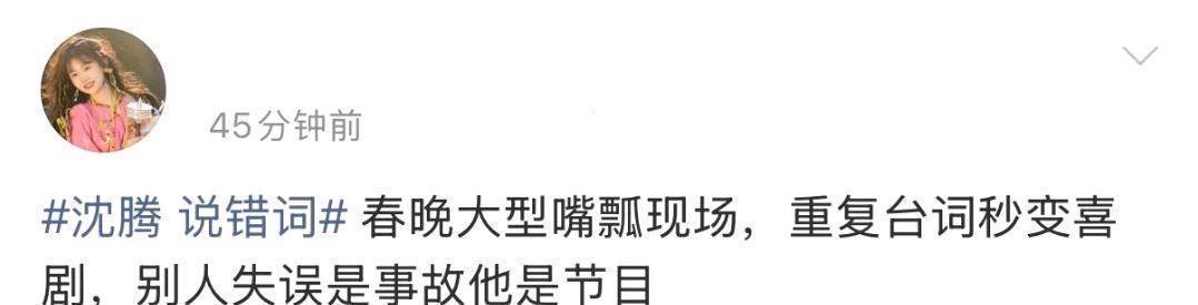 事后,这段口误迅速冲上热搜。网友们的评论更是笑料百出:“别人忘词是直播事故,沈腾忘词是节目效果”“腾哥这是紧张到CPU烧了”。