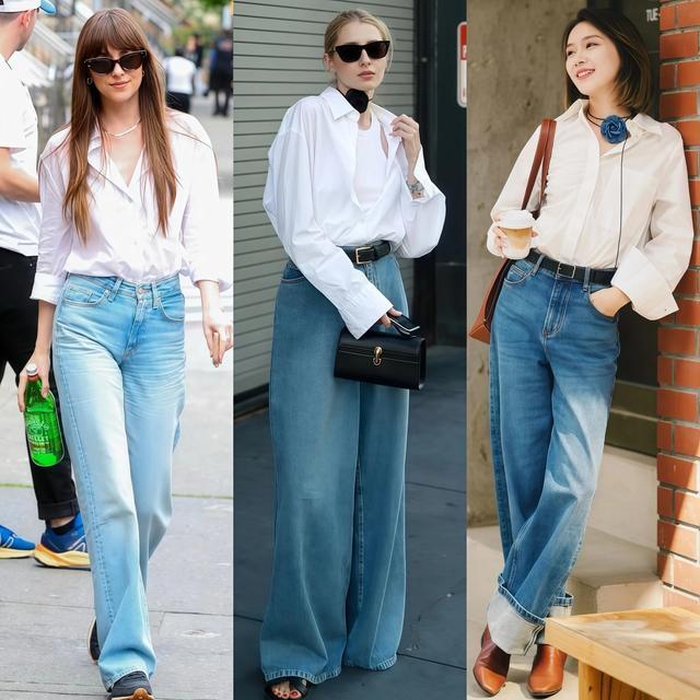 你平时穿T恤配阔腿裤,舒服是舒服但总差了点精气神,把T恤换成一件白衬衫再对比一下,领口一翻袖口一挽精致程度完全不同,同样是搭阔腿裤衬衫的效果甩T恤一大截。