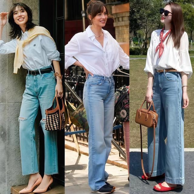 ▶ 白色、牛仔蓝、卡其色最百搭,搭浅色衬衫超好看
