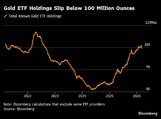 数据显示,战事爆发以来,黄金ETF持仓量有所下降。上周总持仓减少近30吨,为两年多来最大单周抛售规模。