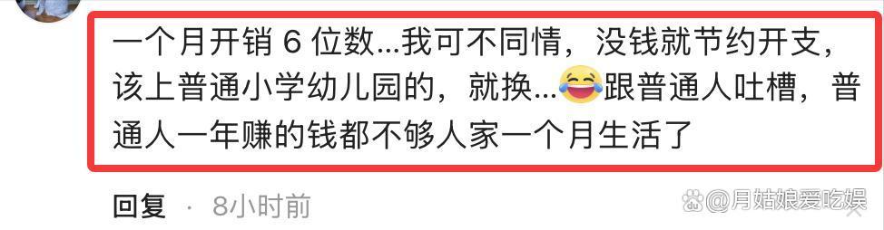 她说“六位数开销”。有人回:我家一个月五六千,照样鸡飞狗跳。
