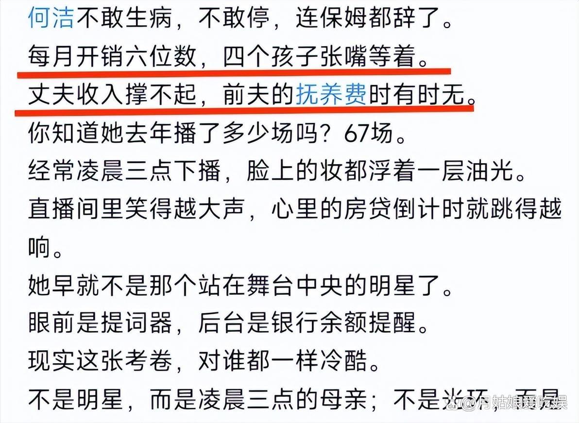 从爆料信息看,她确实在拼:直播频率高,商演也在跑,还尝试巡演、做母婴产品。镜头里的疲惫感,很多人看一眼就懂——那不是化妆能装出来的状态。