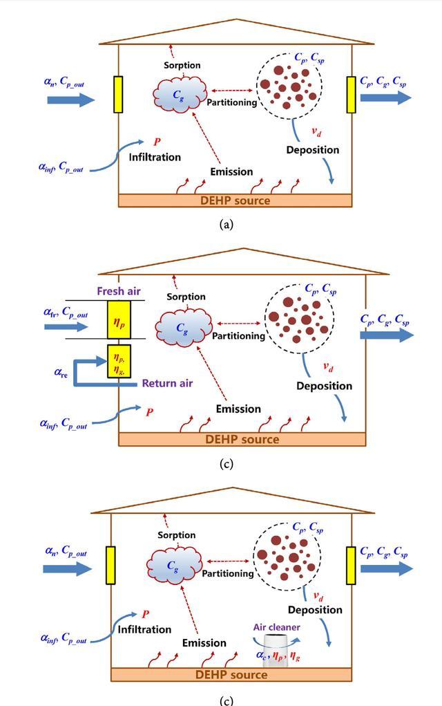 不同情景下室内邻苯二甲酸二乙酯(DEHP)的演变情况示意图