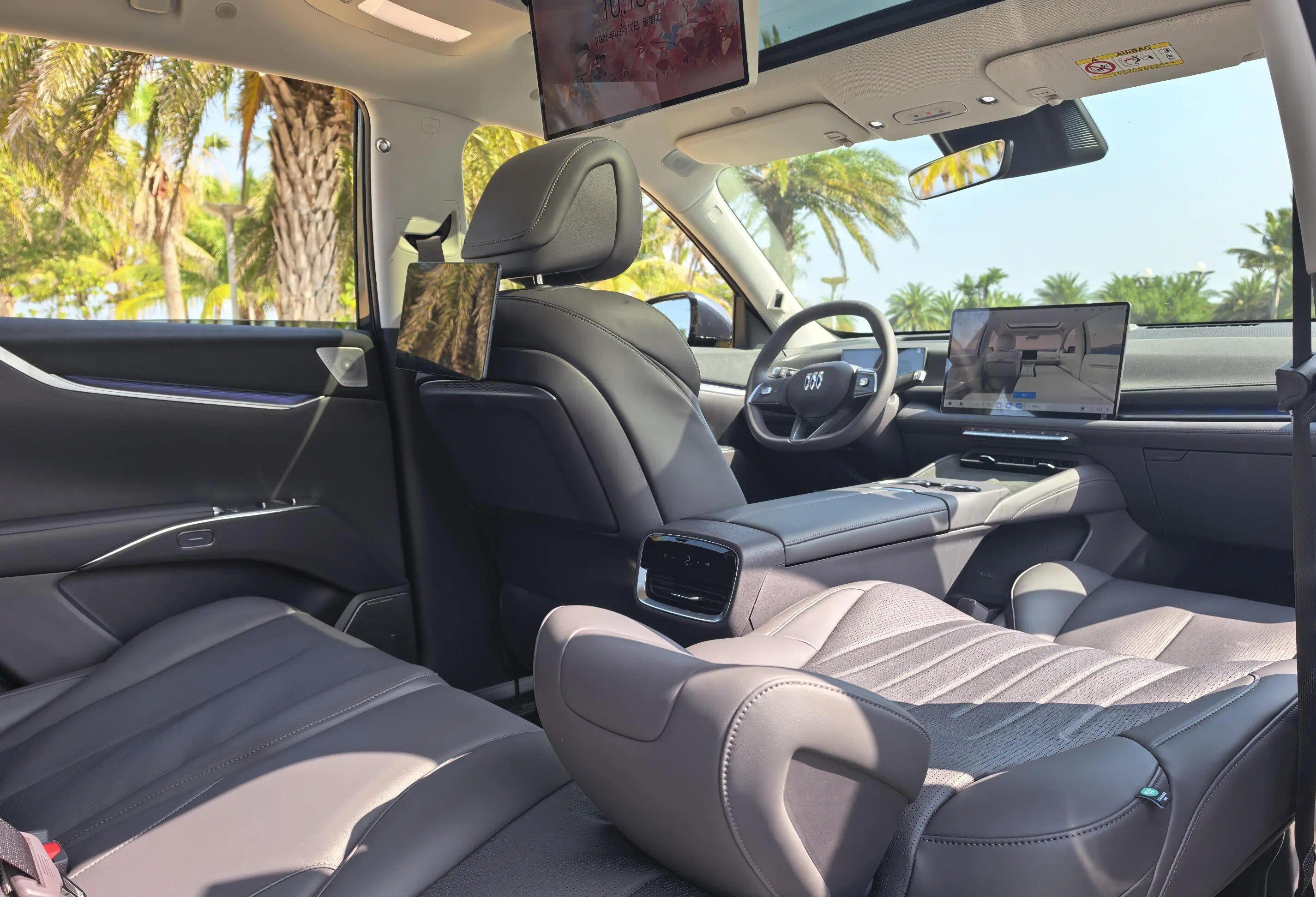 舒适层面同样诚意满满。全系标配伊姆斯零重力躺椅与一键成床功能,前排座椅集成加热、通风、按摩,后排座椅支持115°-125°电动调节及通风加热。再加上20扬声器智能环绕音响、50W手机无线充电、多色智能交互氛围灯等配置,日常出行的豪华体验被拉到了远超价位的水平。